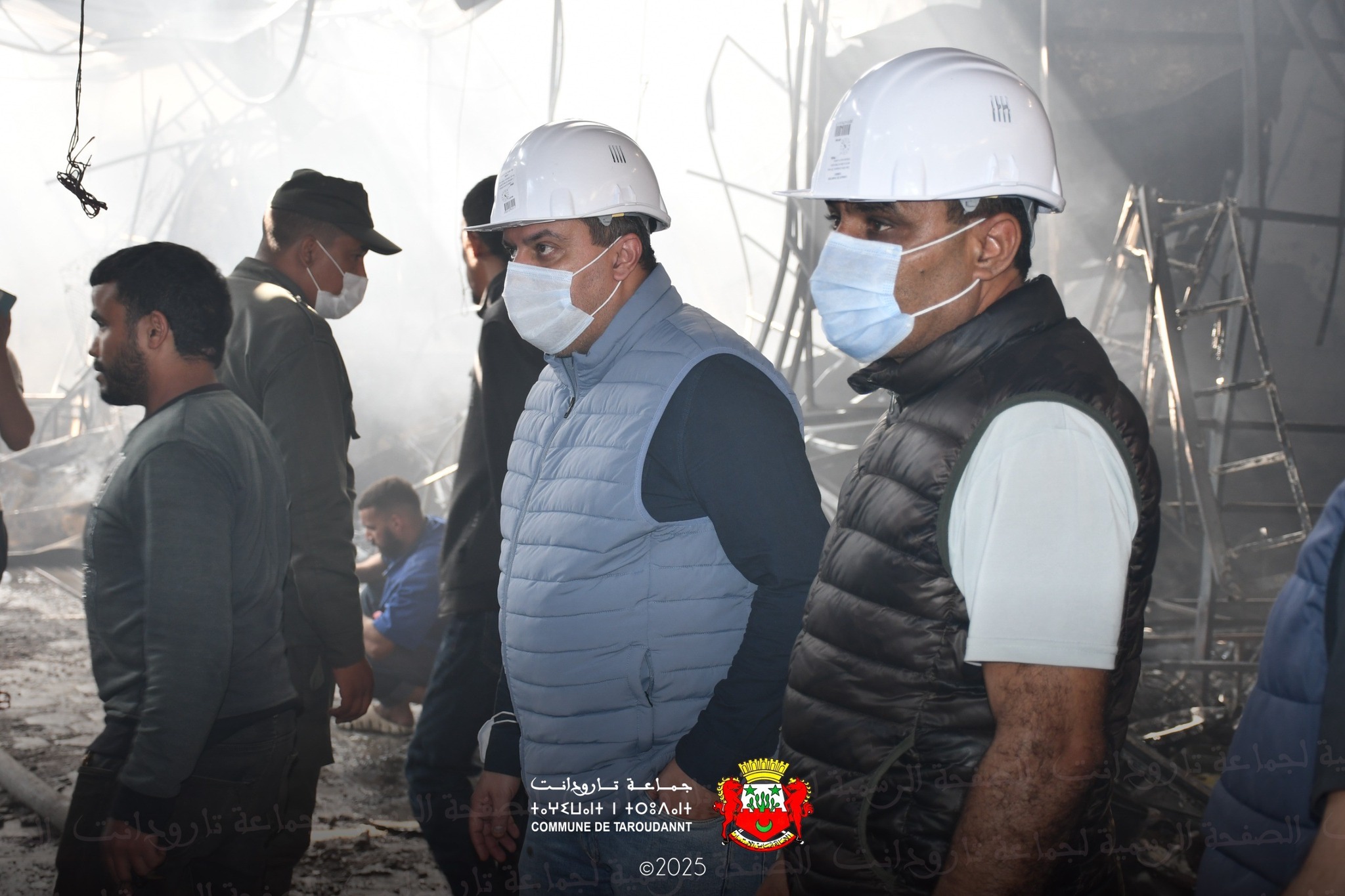 هذا وعملت مصالح الوقاية المدنية التي تولت عملية الإطفاء، إلى جانب عناصر الأمن الوطني والقوات المساعدة، الذين قاموا بتطويق المكان وتأمين سلامة المواطنين ومنعهم من الاقتراب من موقع الحريق بتنسيق مع مصالح جماعة تارودانت و تعاونية بلادنا كوباك ومنظمة الهلال الأحمر المغربي فرع تارودانت، وعمال شركة تهيئة وترميم سور مدينة تارودانت.