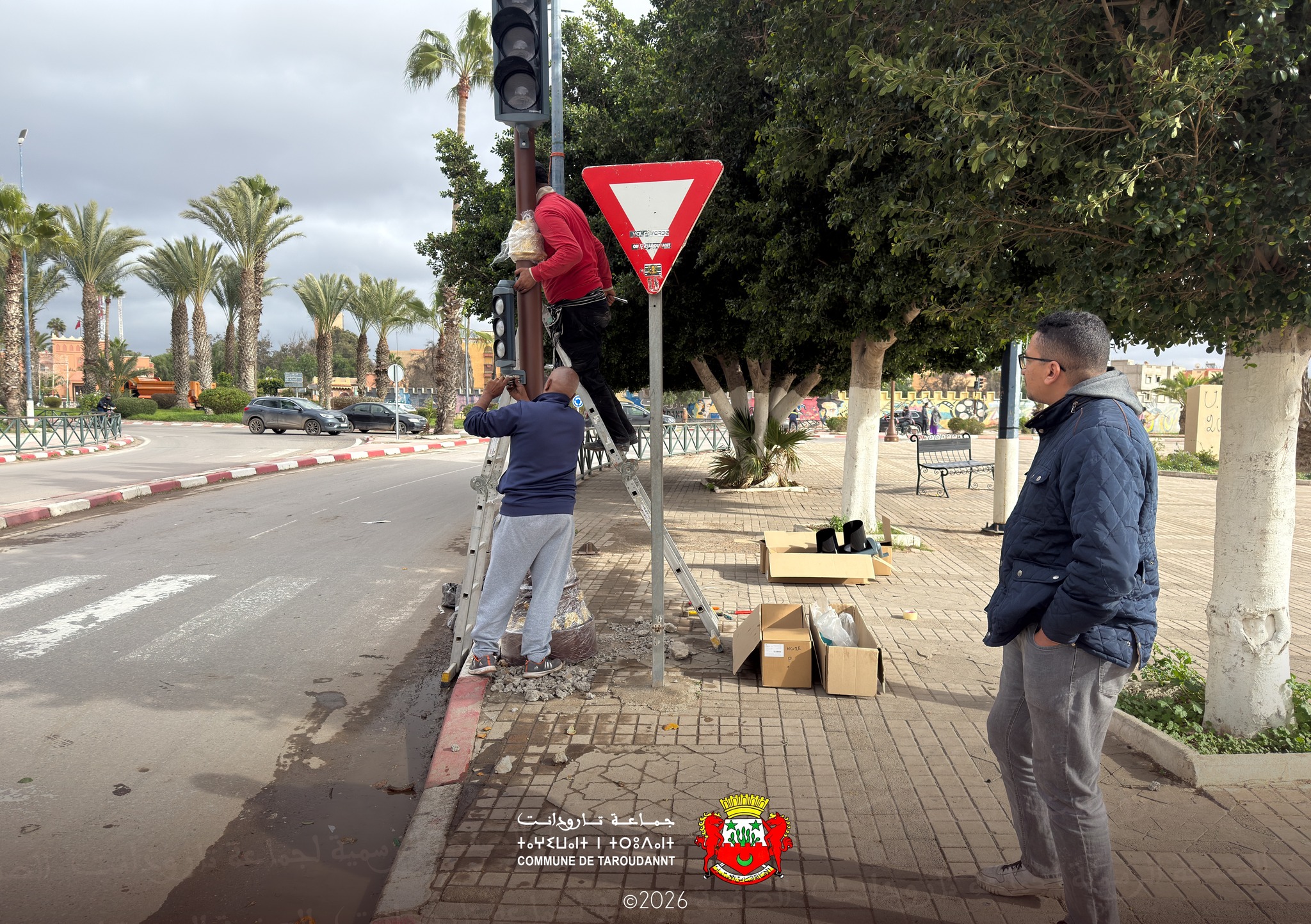 في إطار الصفقة التي أطلقتها جماعة تارودانت ، شرع يومه الأربعاء 28 يناير 2026 في تركيب و تحديث الإشارات المرورية وسط المدينة و التي كانت قد تعرضت لعمليات التخريب مؤخرا.