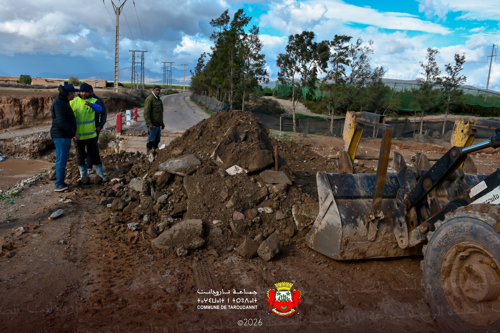 على إثر التساقطات المطرية الغزيرة والسيول الجارفة التي عرفتها الوديان على مستوى جماعة تارودانت، وما نتج عنها من تضرر إحدى القناطر الواقعة بالطريق الرابطة بين مدينة تارودانت وجماعة أيت مخلوف، سارعت جماعة تارودانت، يوم الاثنين 05 يناير 2026 بتنسيق مع مختلف مصالحها المختصة، إلى اتخاذ تدابير استعجالية تروم إعادة فتح هذا المحور الطرقي الحيوي في أقرب الآجال.